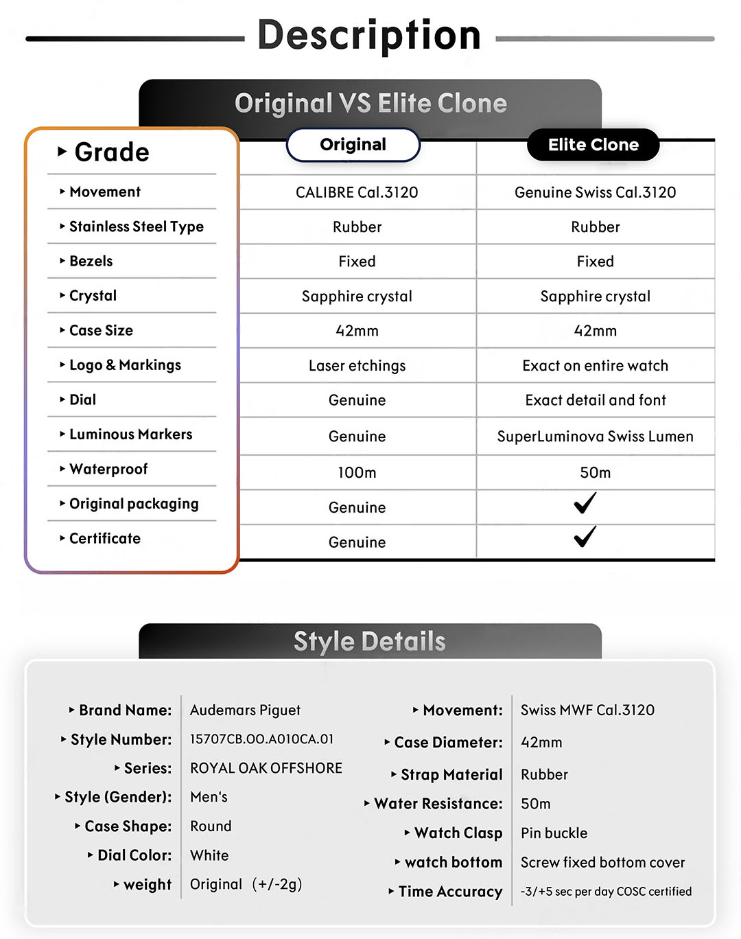 A Goguara utiliza um processo de autenticação rigoroso e detalhado. Cada produto é retirado da caixa para uma inspeção minuciosa de: