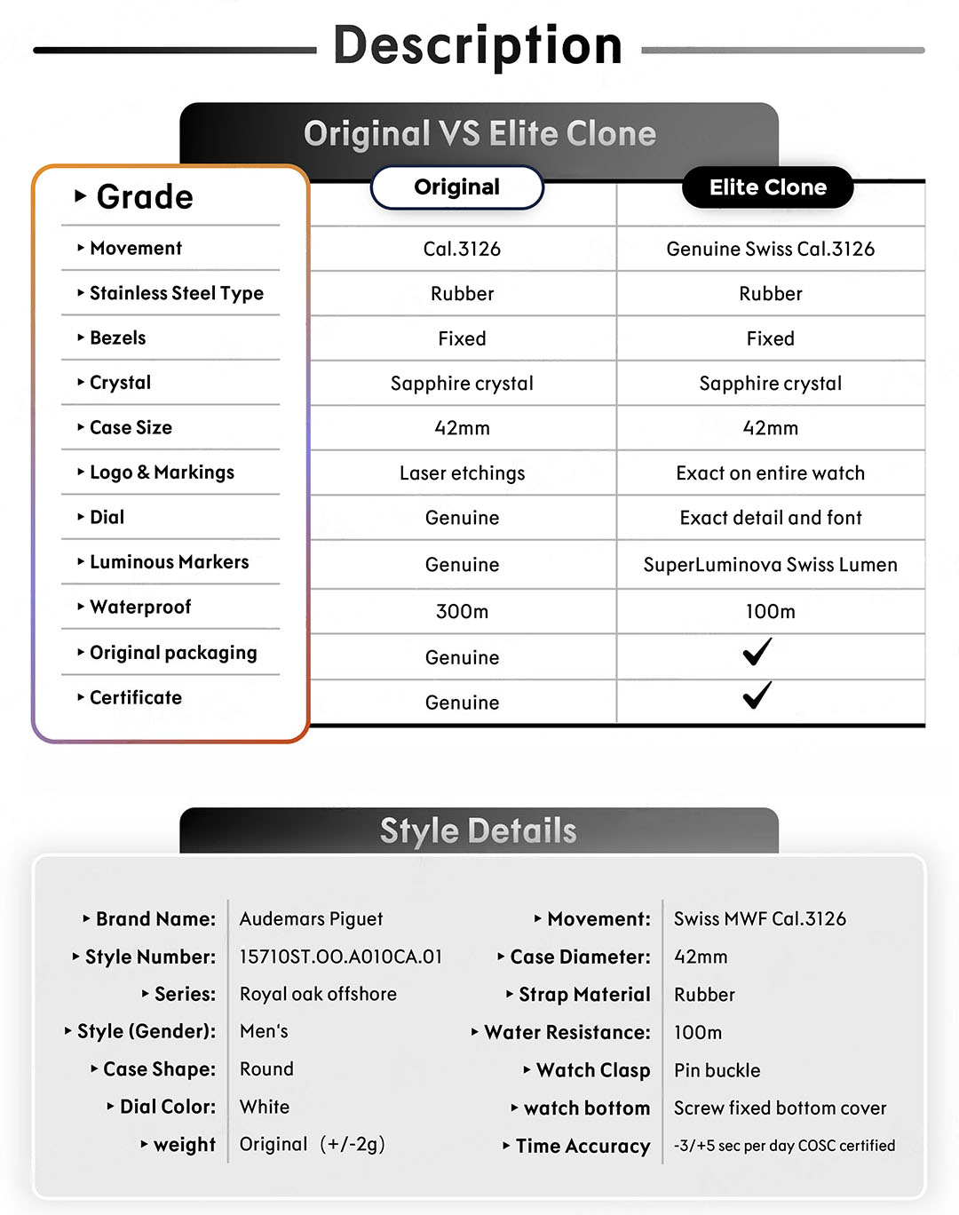 A Goguara utiliza um processo de autenticação rigoroso e detalhado. Cada produto é retirado da caixa para uma inspeção minuciosa de: