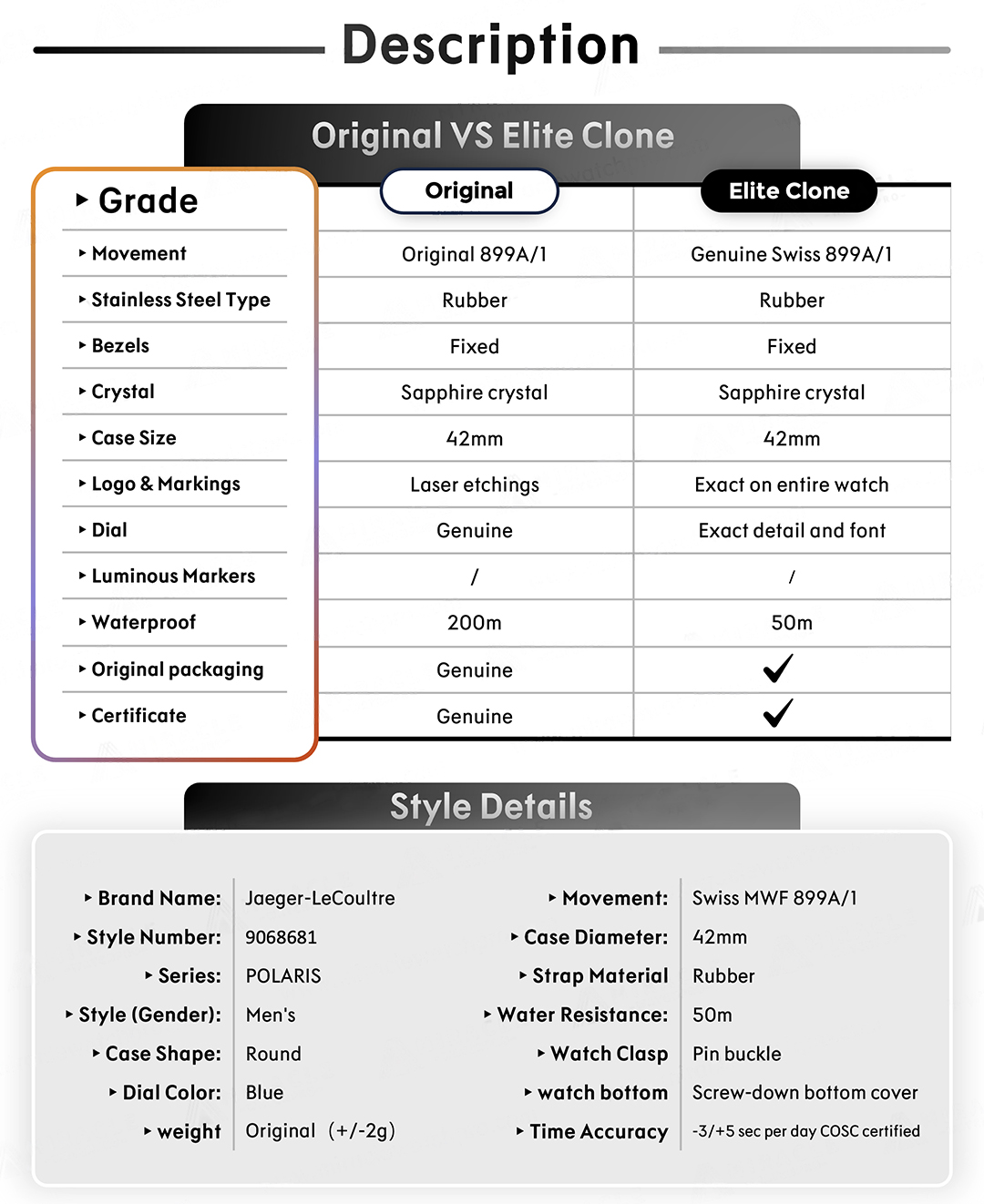 A Goguara utiliza um processo de autenticação rigoroso e detalhado. Cada produto é retirado da caixa para uma inspeção minuciosa de: