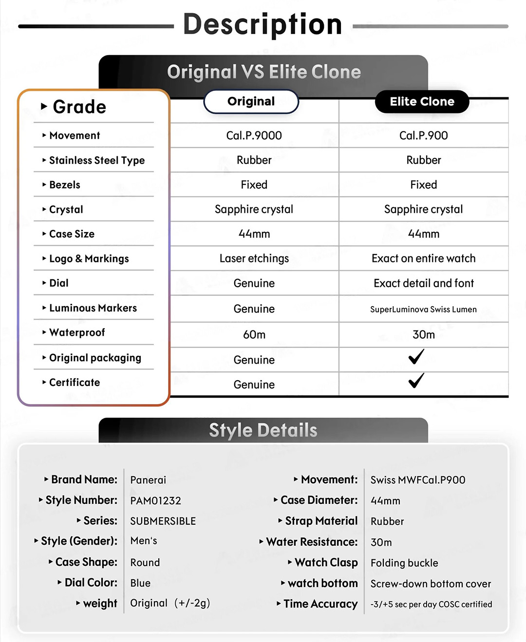 A Goguara utiliza um processo de autenticação rigoroso e detalhado. Cada produto é retirado da caixa para uma inspeção minuciosa de:
