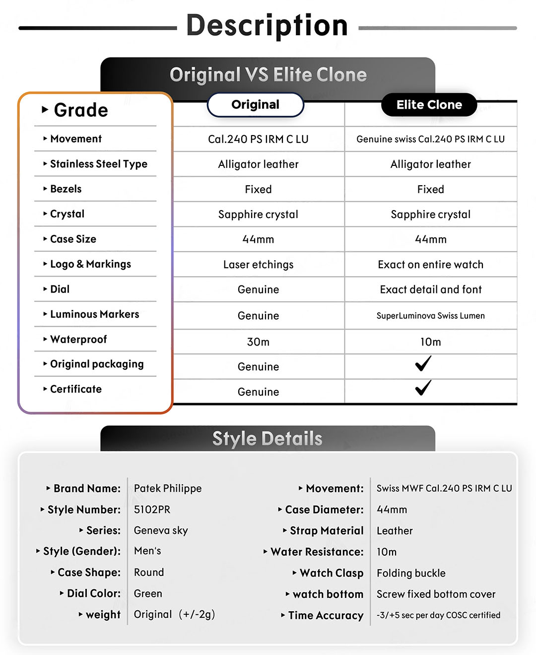 A Goguara utiliza um processo de autenticação rigoroso e detalhado. Cada produto é retirado da caixa para uma inspeção minuciosa de: